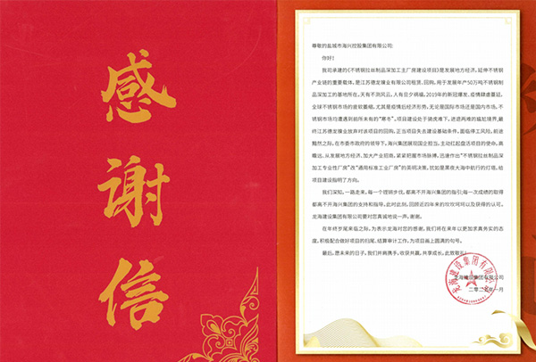 紙短情長 字字暖心|拉絲廠房項目收到感謝信