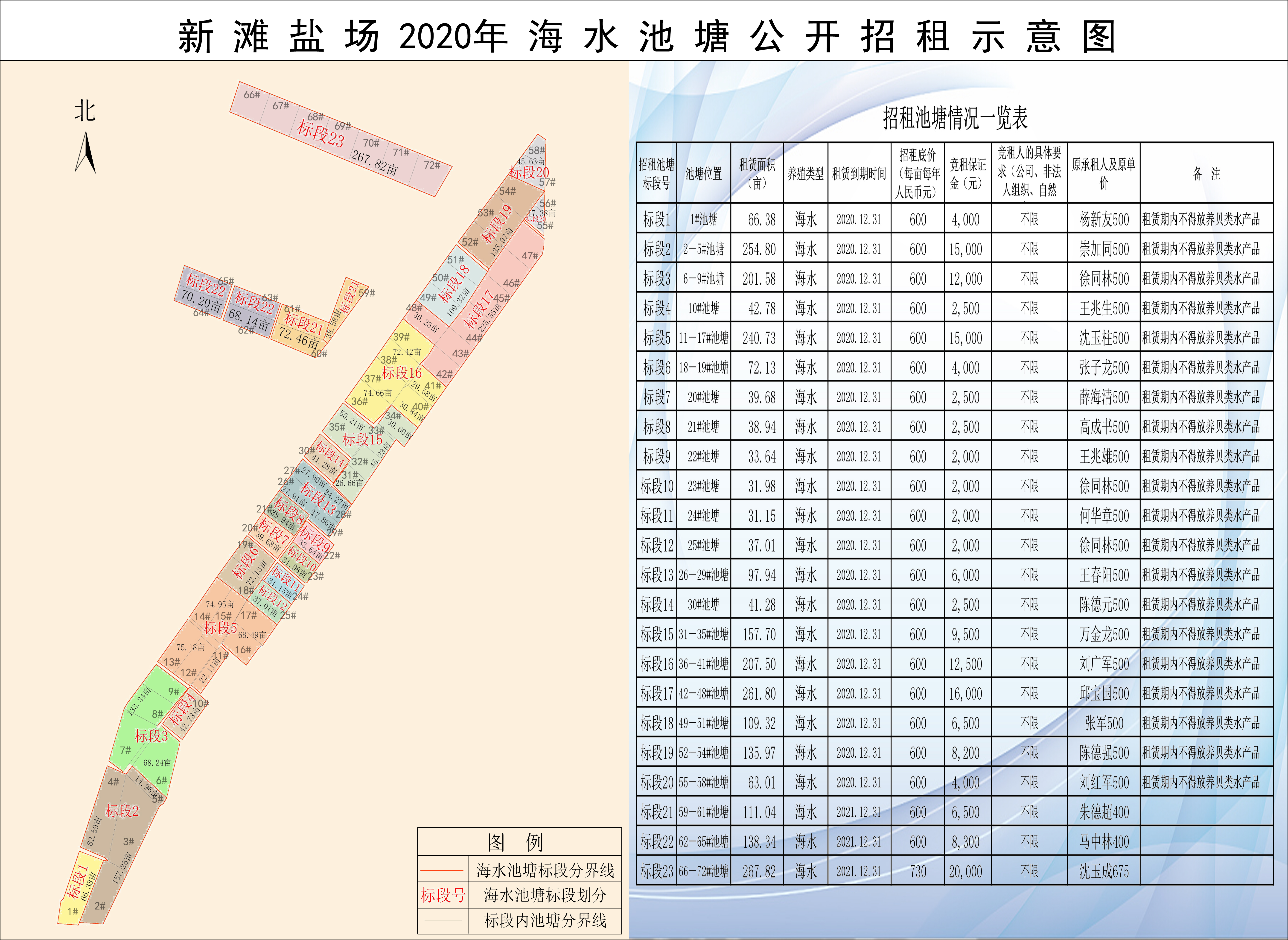2.如競租人系招租人新灘鹽場以前的池塘養(yǎng)殖承租戶或承包人的,須與招租人之間就此前池塘租賃合同沒有任何未處理完畢的爭議,并簽署了《聲明書》。