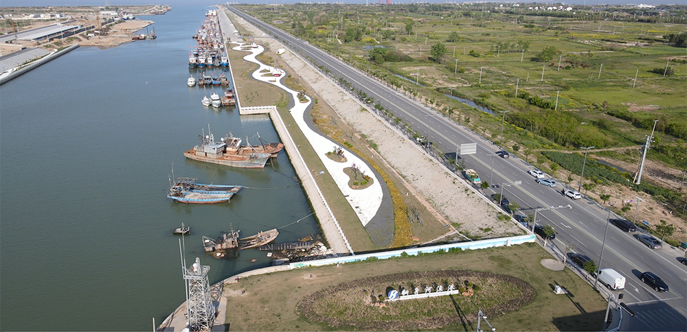 翻身河漁港升級(jí)改造項(xiàng)目按照國家一級(jí)漁港標(biāo)準(zhǔn)規(guī)劃建設(shè),改造后的陸域面積達(dá)88萬平方米,水域面積達(dá)30萬平方米,最寬處達(dá)220米。水工部分設(shè)有1942米海堤、1345米護(hù)岸、2210米碼頭泊位。其中北側(cè)護(hù)岸779米,碼頭泊位1242米,南側(cè)護(hù)岸566米,碼頭泊位968米,共設(shè)置泊位66個(gè),南北兩側(cè)各33個(gè),合計(jì)可并排應(yīng)急??考s1000艘270馬力的漁船。南岸碼頭為休息待泊泊位,北岸為生產(chǎn)性泊位,具有卸魚、加油、加冰、加水等功能,總投資約3.4億元(不含征地拆遷費(fèi)用)。