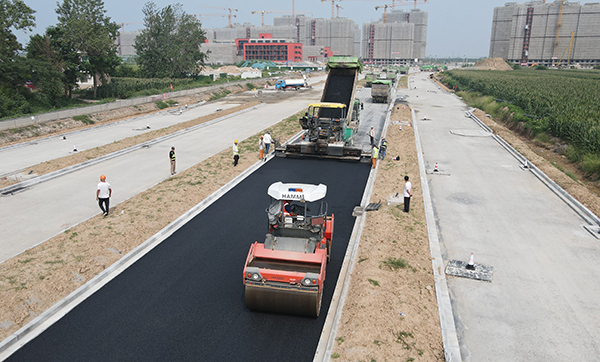 港城路網(wǎng)瀝青攤鋪工作正式啟動(dòng)